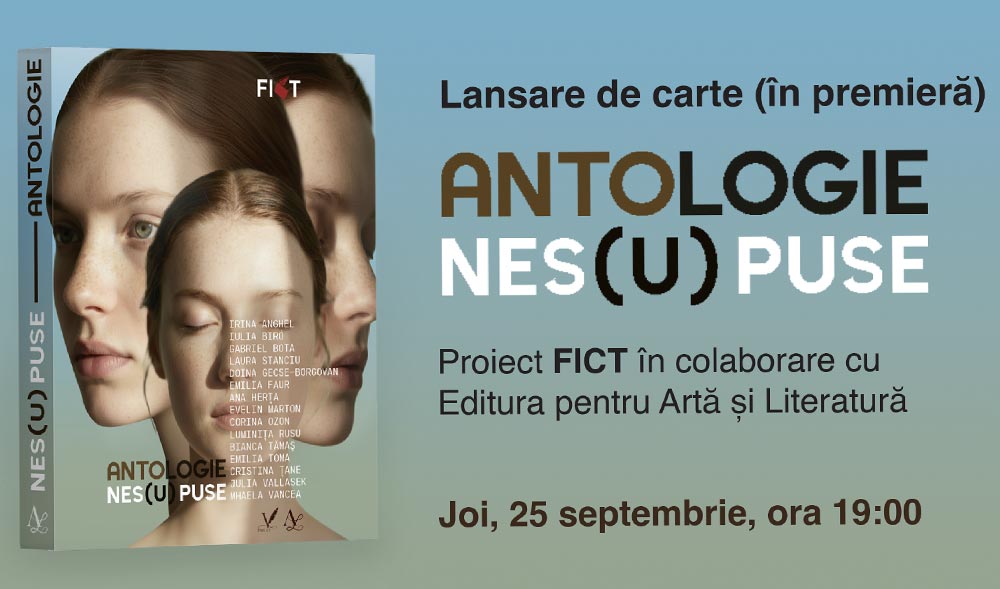 Te așteptăm în 25 septembrie, de la ora 19:00, în Lounge-ul Oficial FICT, la lansarea volumului de proză scurtă „Nes(u)puse”, coordonat de Luminița Rusu și Bianca Tămaș și publicat de Editura pentru Artă și Literatură.